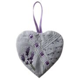 White Cotton Embroidered filled Lavender Heart 11.5CM