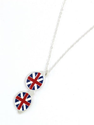 Union Jack Flag Red White & Blue Glasses shape Pendant with Necklace
