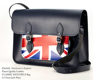 Union Jack Midi Satchel Handmade Leather - Navy Blue